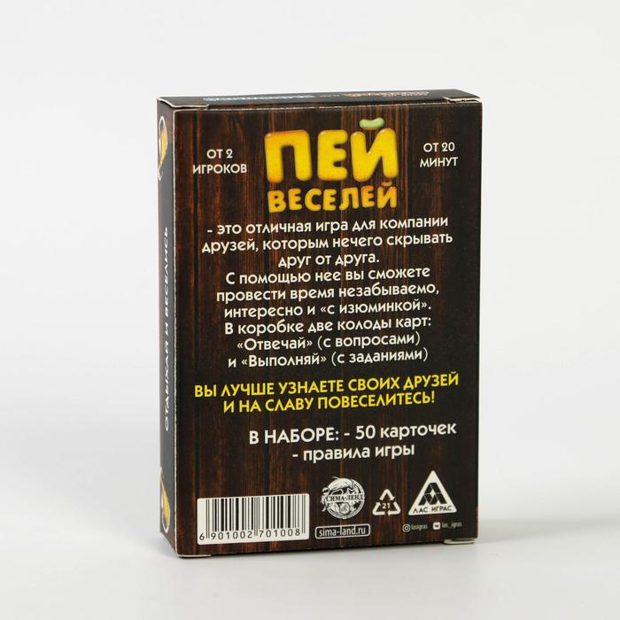 Купить игра для компании "пей веселей" 50 карт от 180 руб. с доставкой до пункта выдачи в Сысерти. Интернет магазин ДекаМаркет. Оплата при получении.