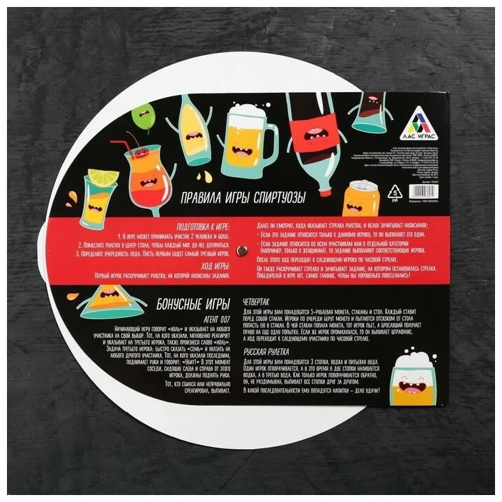 Правила просты: по очереди крутите колесо и выполняйте задания. Не забывайте вовремя наполнять бокалы: в игре нужно действительно много выпивать, а это значит, что веселье будет литься рекой!